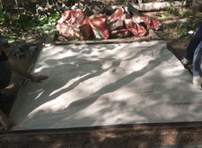 Далее устанавливаем опалубку, которую засыпаем сухой пескобетонной смесью.