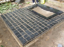 Приступаем к монтажу памятника. Привезли уже готовое надгробье, водрузили его на сделанное заранее основание, укрепили.